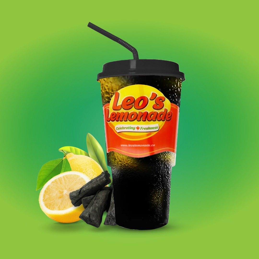 A refreshing drink made with activated charcoal and lemon, offering a tangy, earthy flavor.